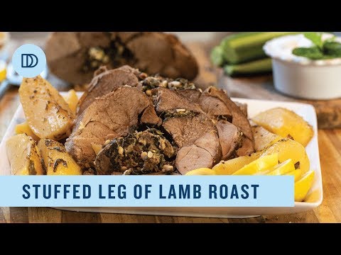 Roasted Leg of Lamb Stuffed with Spinach & Feta - Lamb Feta Recipe - Get this recipe on my website: www.dimitrasdishes.com Serves 4-6: 1 (5 pound) boneless leg of lamb 3 pounds potatoes, quartered For the stuffing: • 3 scallions, ...